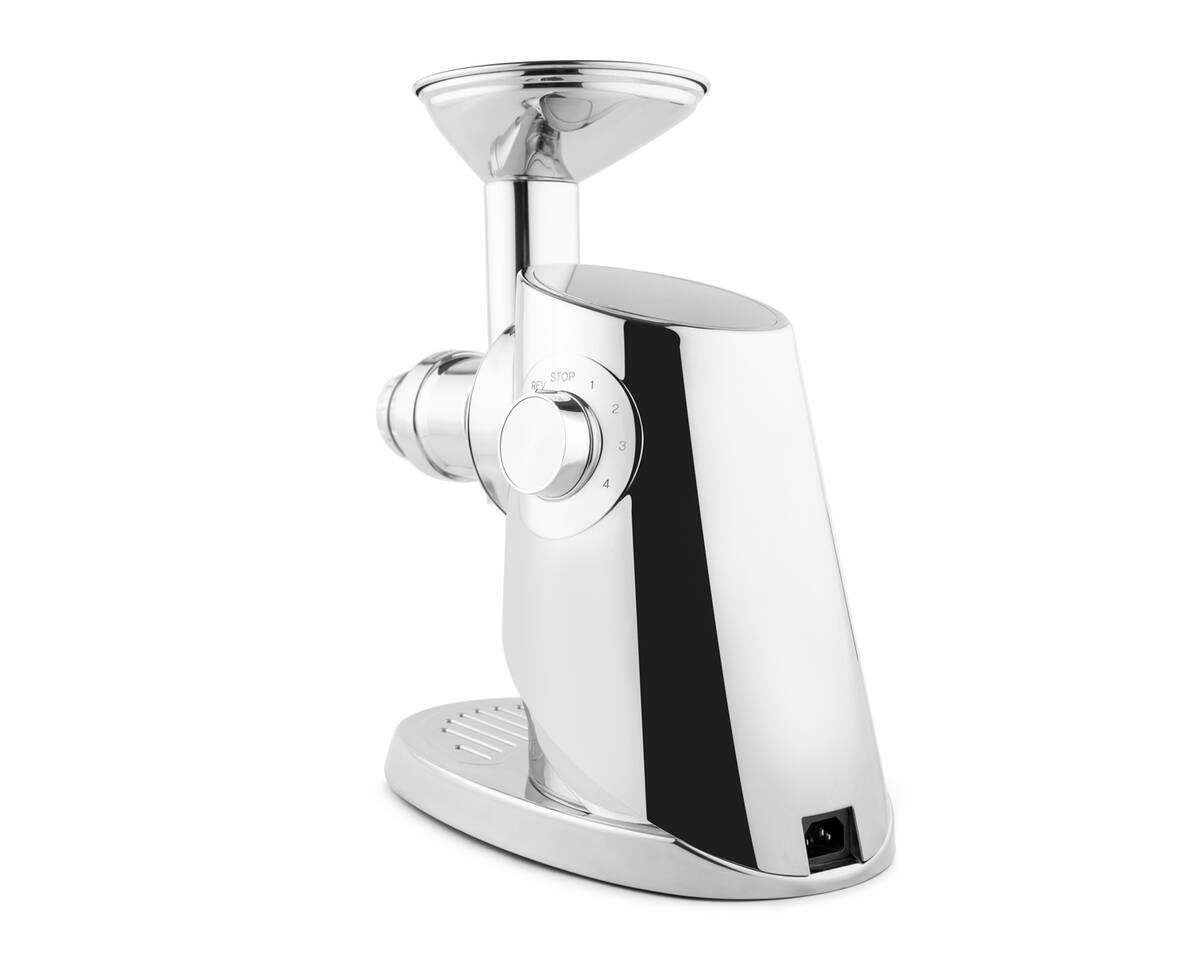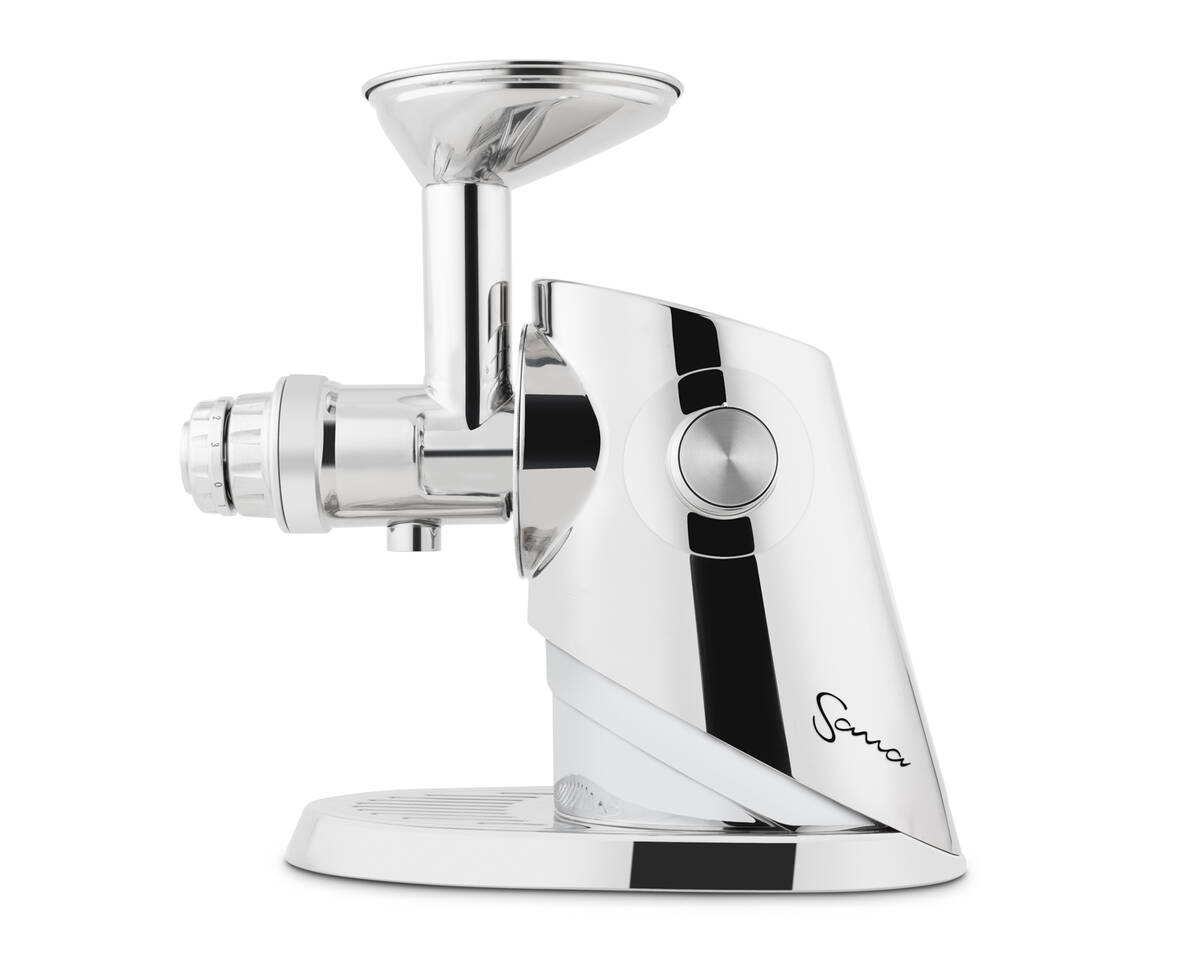 A slow juicer made from solid stainless steel has been the Holy Grail of the juicing industry for years, and now it's finally here. Sana took four years of development and testing, because they wanted to do it right. Wanting to make the world's most durable juicer, they used solid stainless steel parts instead of cheaper stainless steel plated parts. They took the world's best juicer motor from the Sana 727 and beefed it up with stainless steel and nylon gears. Many designs of screens were tested to squeeze out the most juice from fruits and vegetables. They even subjected it to all kinds of torture tests to ensure it would be practically bulletproof.