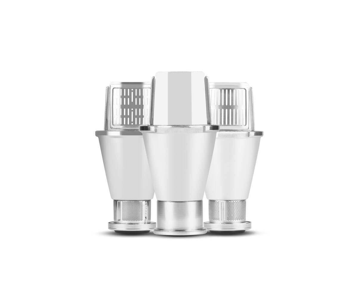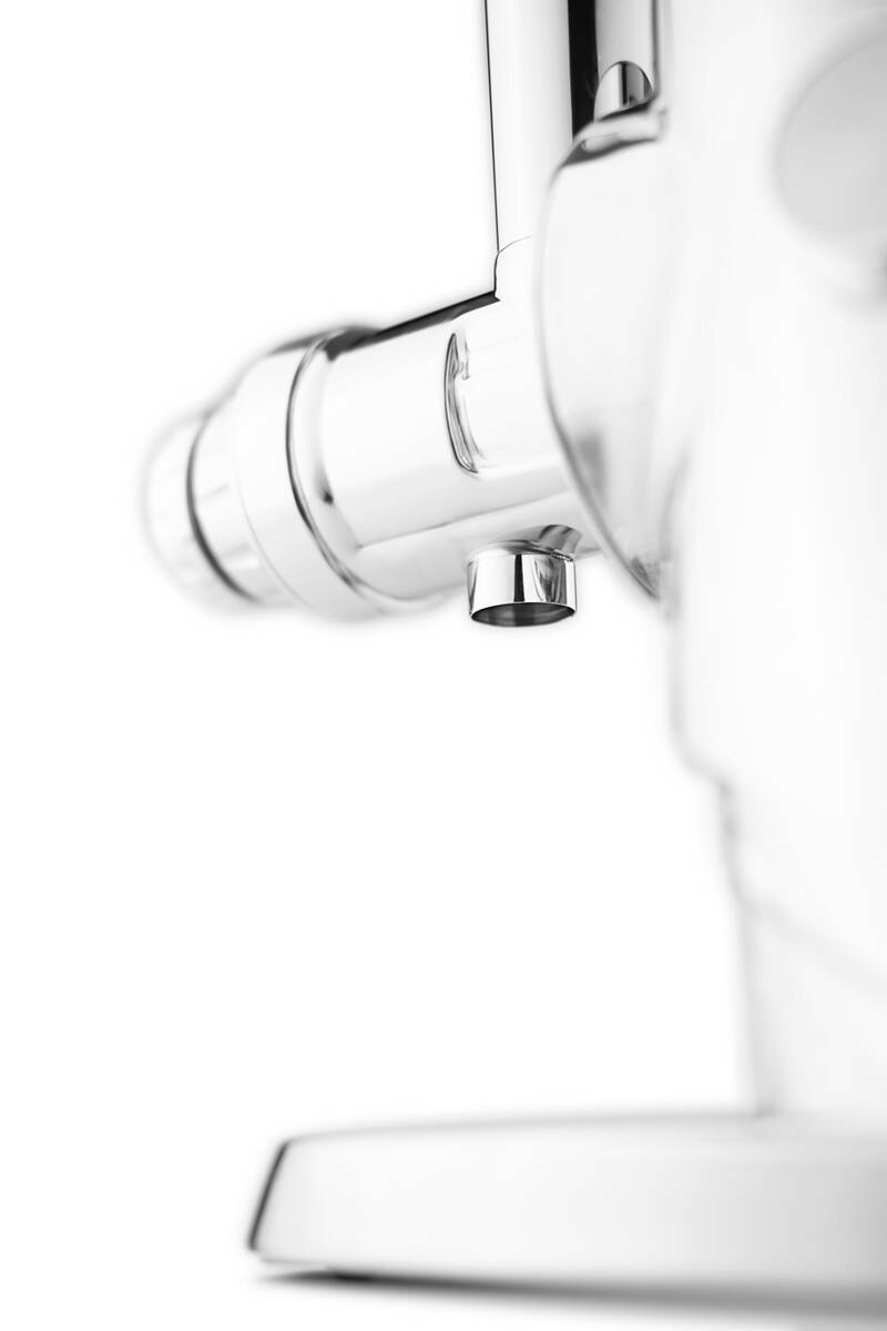 The variable pressure drum cap is made from solid stainless steel, just like all of the juicing parts, and allows you to adjust the pressure in the pulp outlet. The lowest setting is perfect for high juice content produce, as well as soft fruits. Turn it up to the maximum for the highest squeezing power for things like celery, leafy greens, and root vegetables.