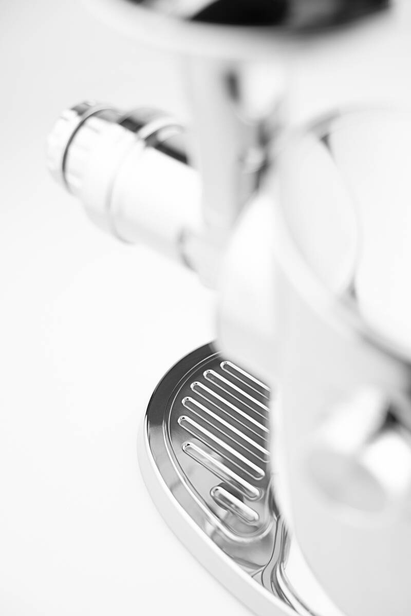 For the feeding tube, Sana took a feature people love from their vertical juicers and adapted it for the Sana Ultimate. The result is a stainless steel dual hopper for effortless feeding of produce. There is a standard opening for things like carrots and celery, as well as a deep bowl for easy feeding of smaller produce or leafy greens.